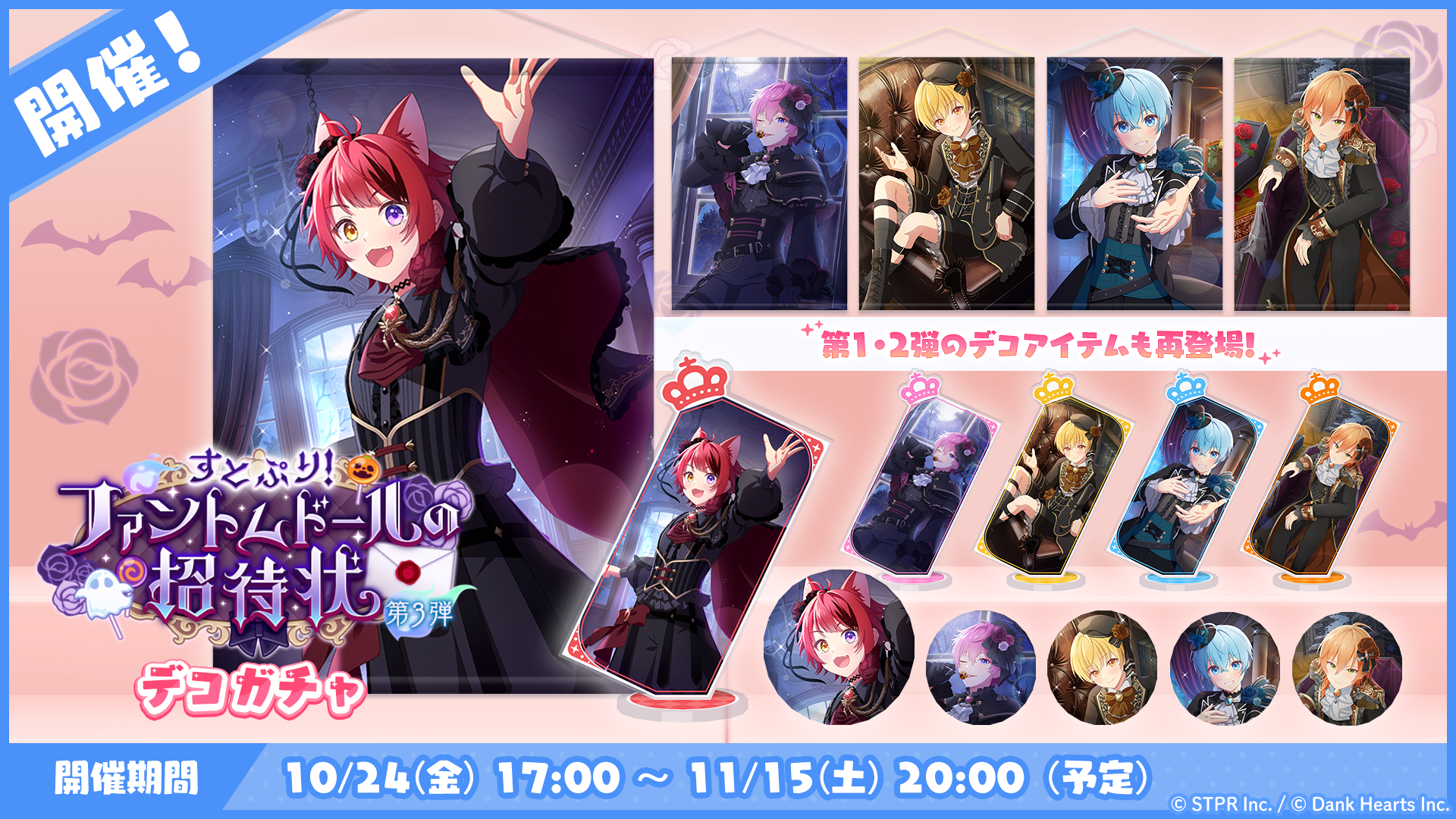 本日10月24日(金)より、新たなデコアイテムがピックアップ登場する「すとぷり!ファントムドールの招待状 第3弾 デコガチャ」が開催中です。