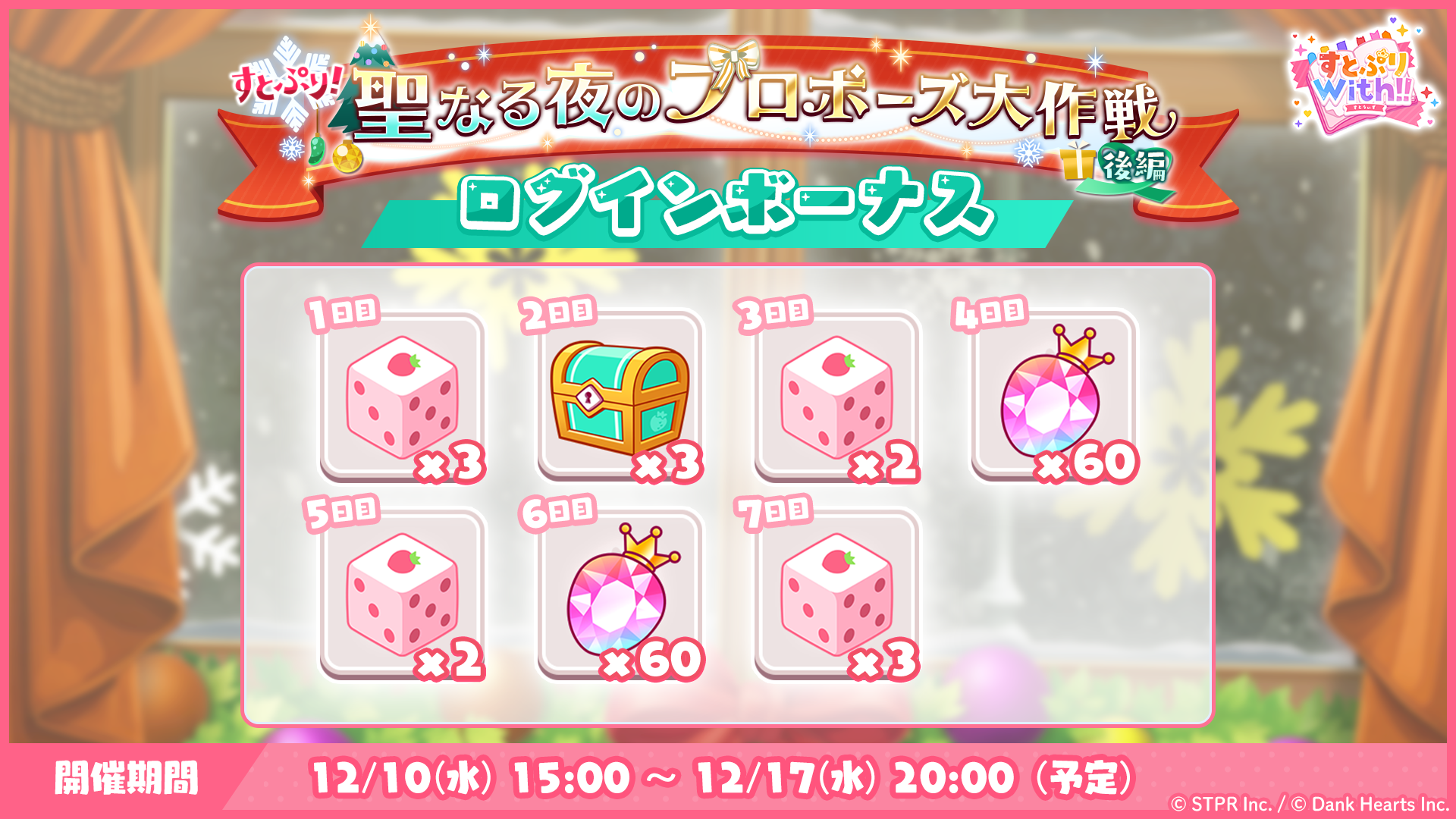 「すとぷり!聖なる夜のプロポーズ大作戦状 後編 ログインボーナス」を実施!