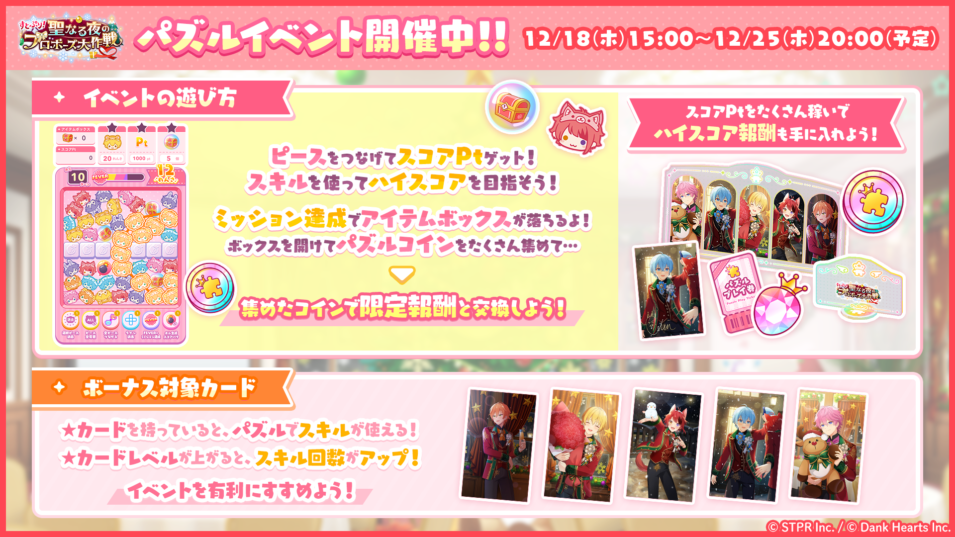 12月のゲーム内イベント「すとぷり!聖なる夜のプロポーズ大作戦 パズルイベント」の開催についてお知らせいたします!