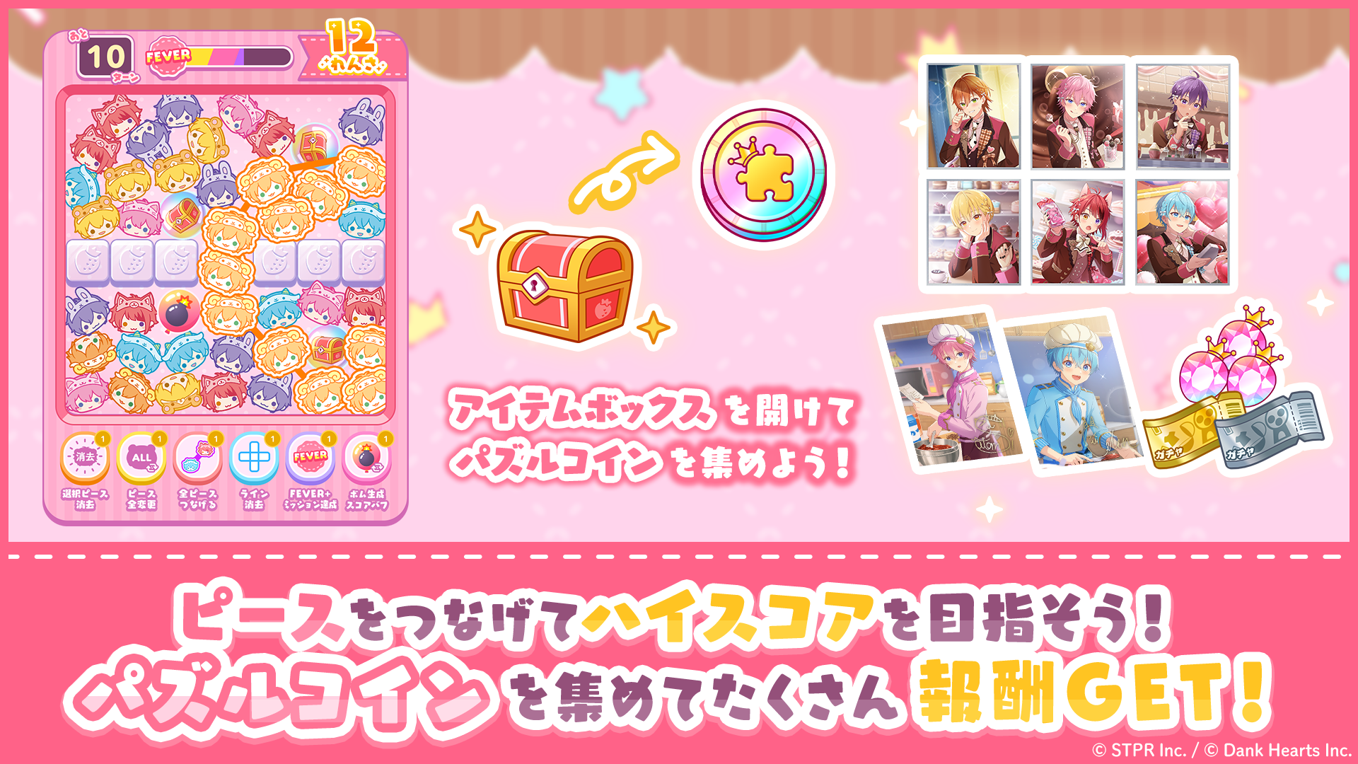 パズルでスコアPtを集め、ハイスコアを達成することで、豪華な報酬を獲得できます。