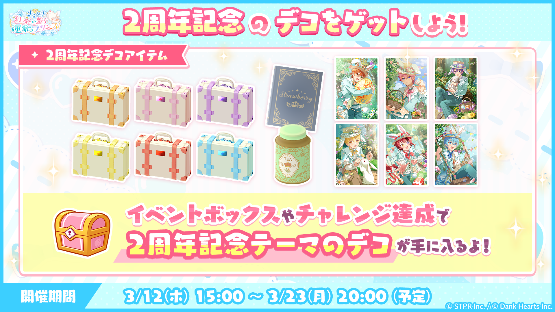 さらに今回のイベントではイベントボックスやキャンペーンチャレンジから2周年記念をテーマにした特別なデコアイテムを入手できます。