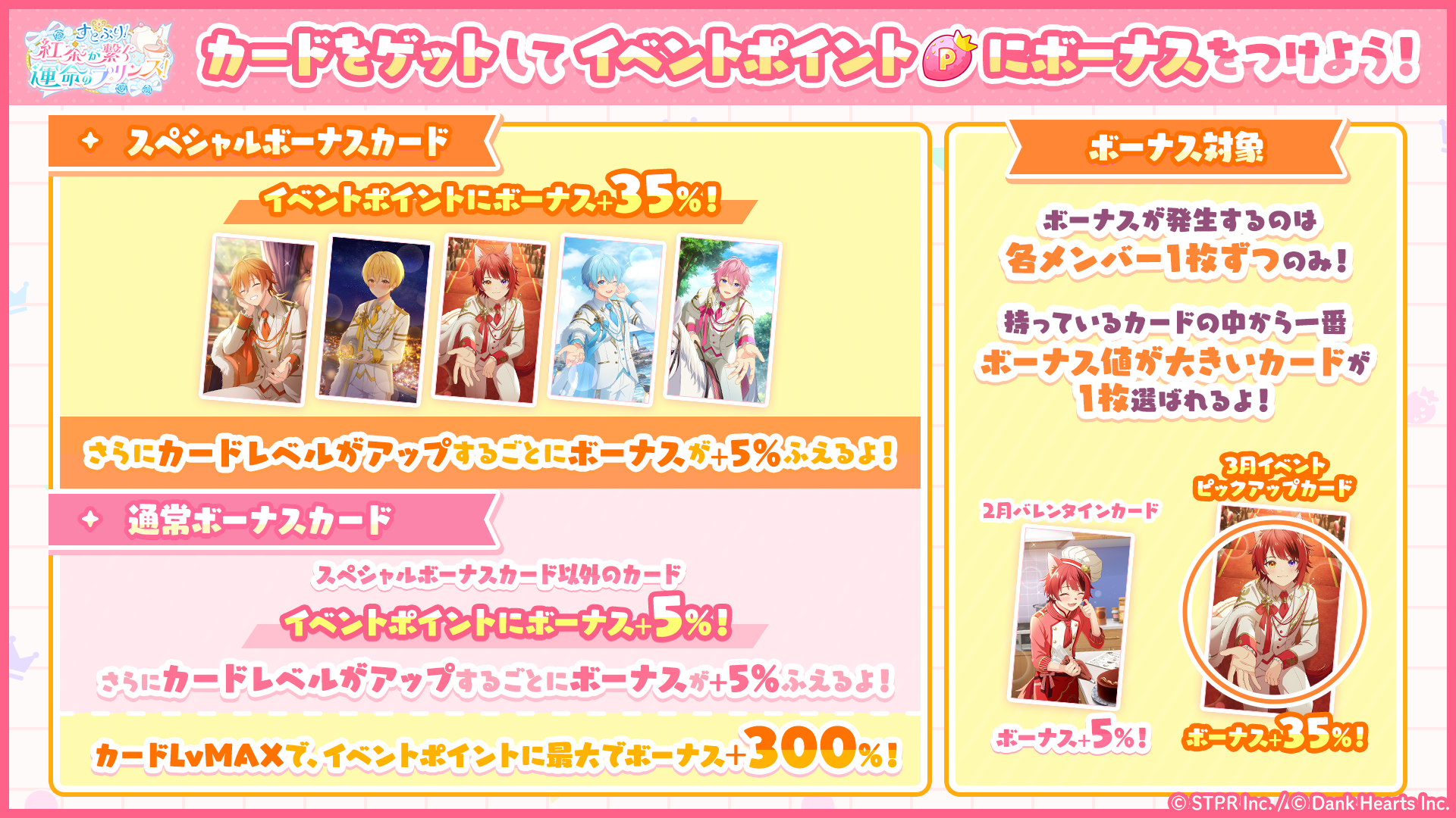 開催月に応じて「通常ボーナスカード」よりもボーナスが高い「スペシャルボーナスカード」が登場します。