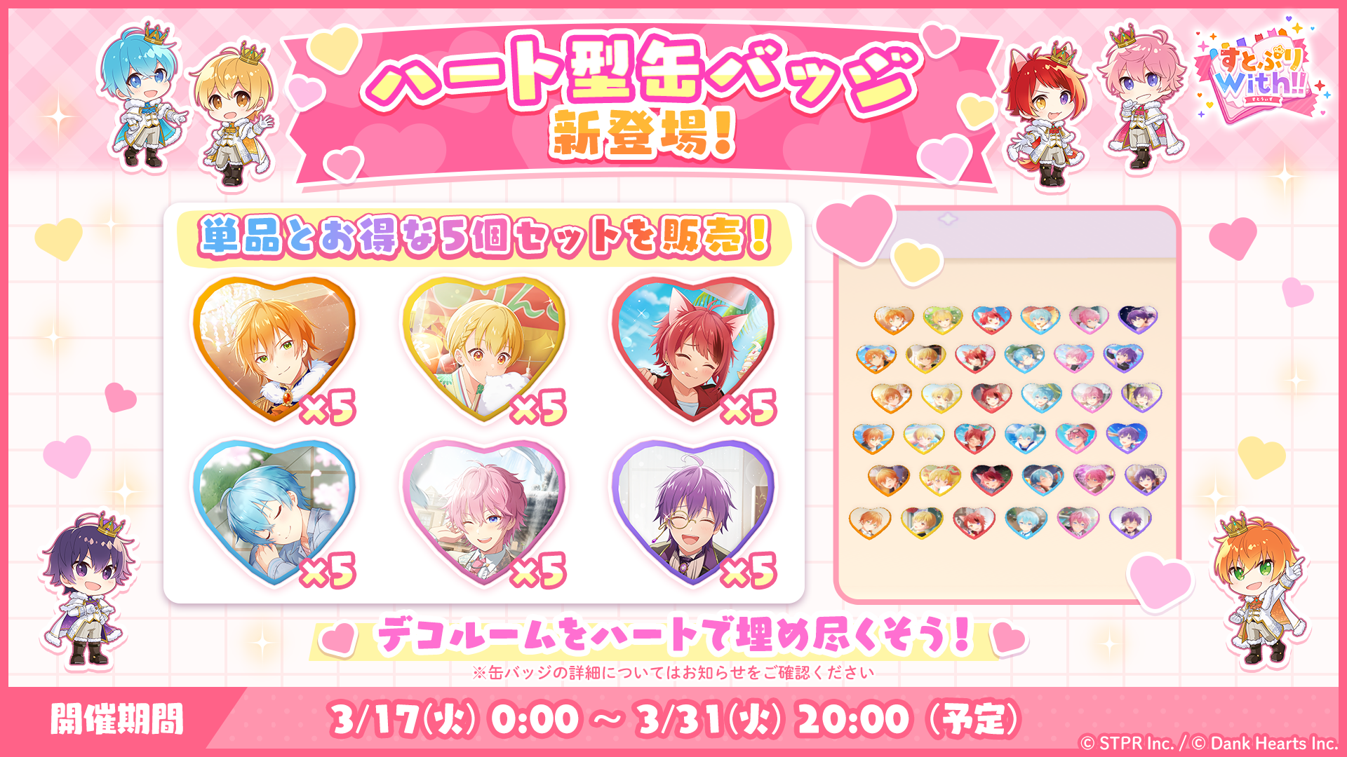 3月17日(火)より、「ハート型缶バッジ交換所」が登場します。