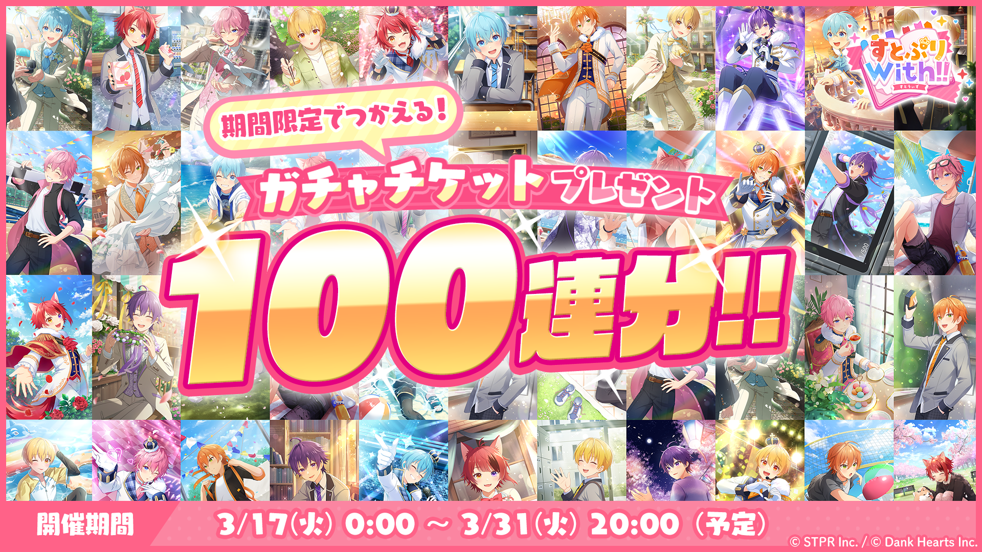 3/17(火)より、「最大100連分ガチャチケットプレゼントログインボーナス」を実施します。