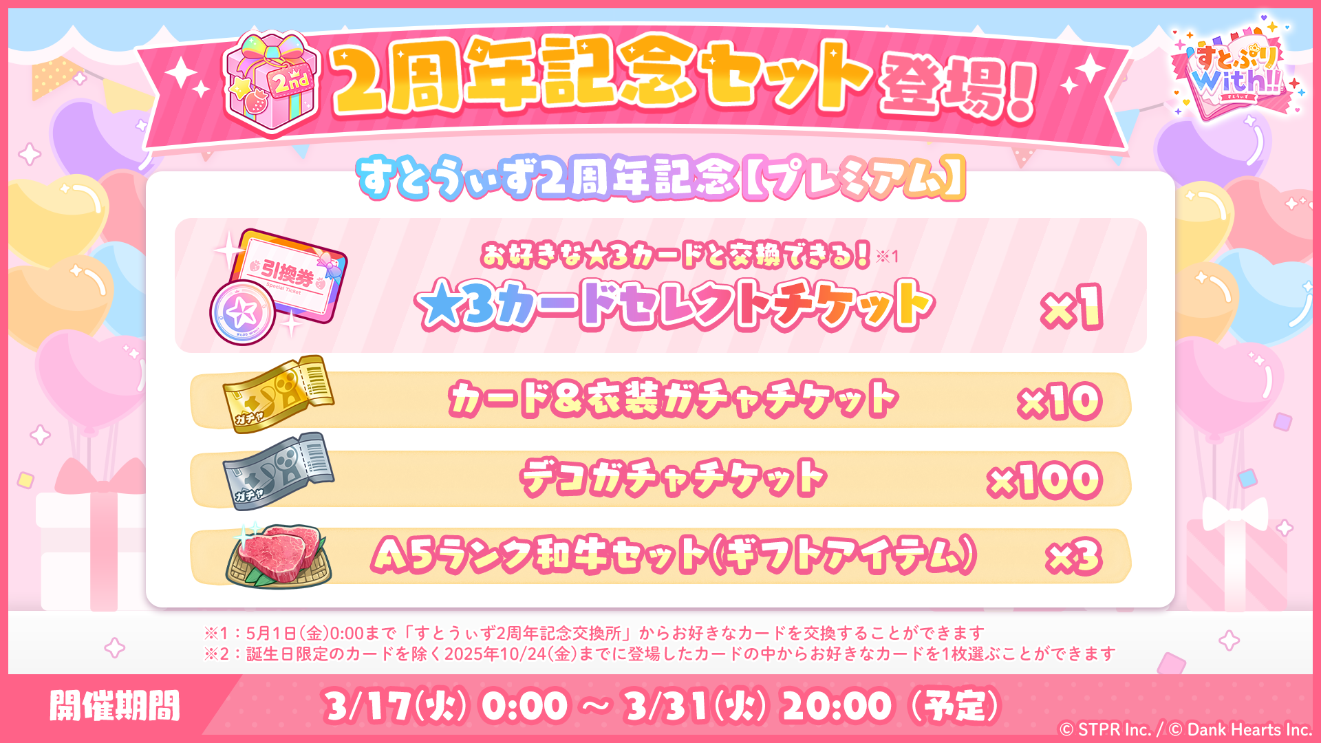 【すとうぃず2周年記念【プレミアム】の内容】