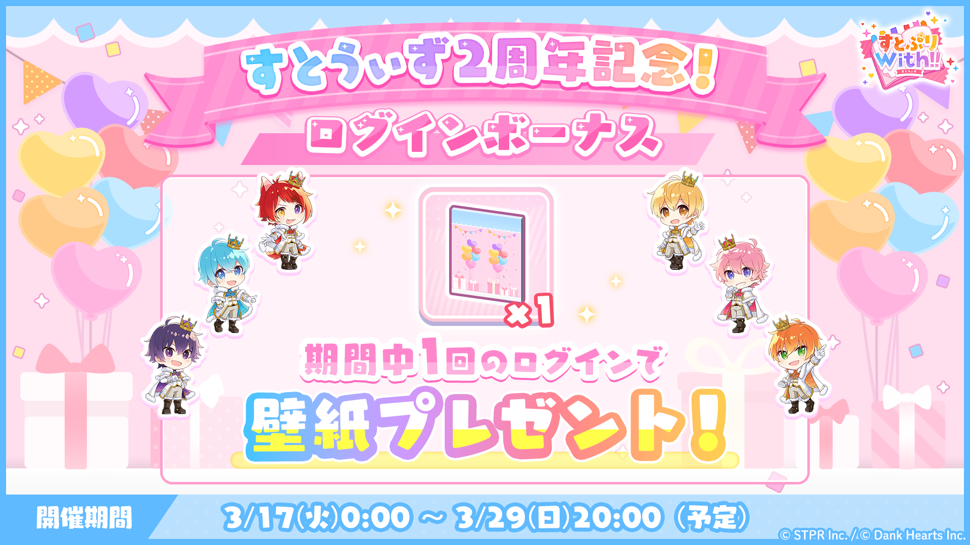 開催期間中にログインすると、すとうぃず2nd Anniversaryの壁紙を獲得いただけます。