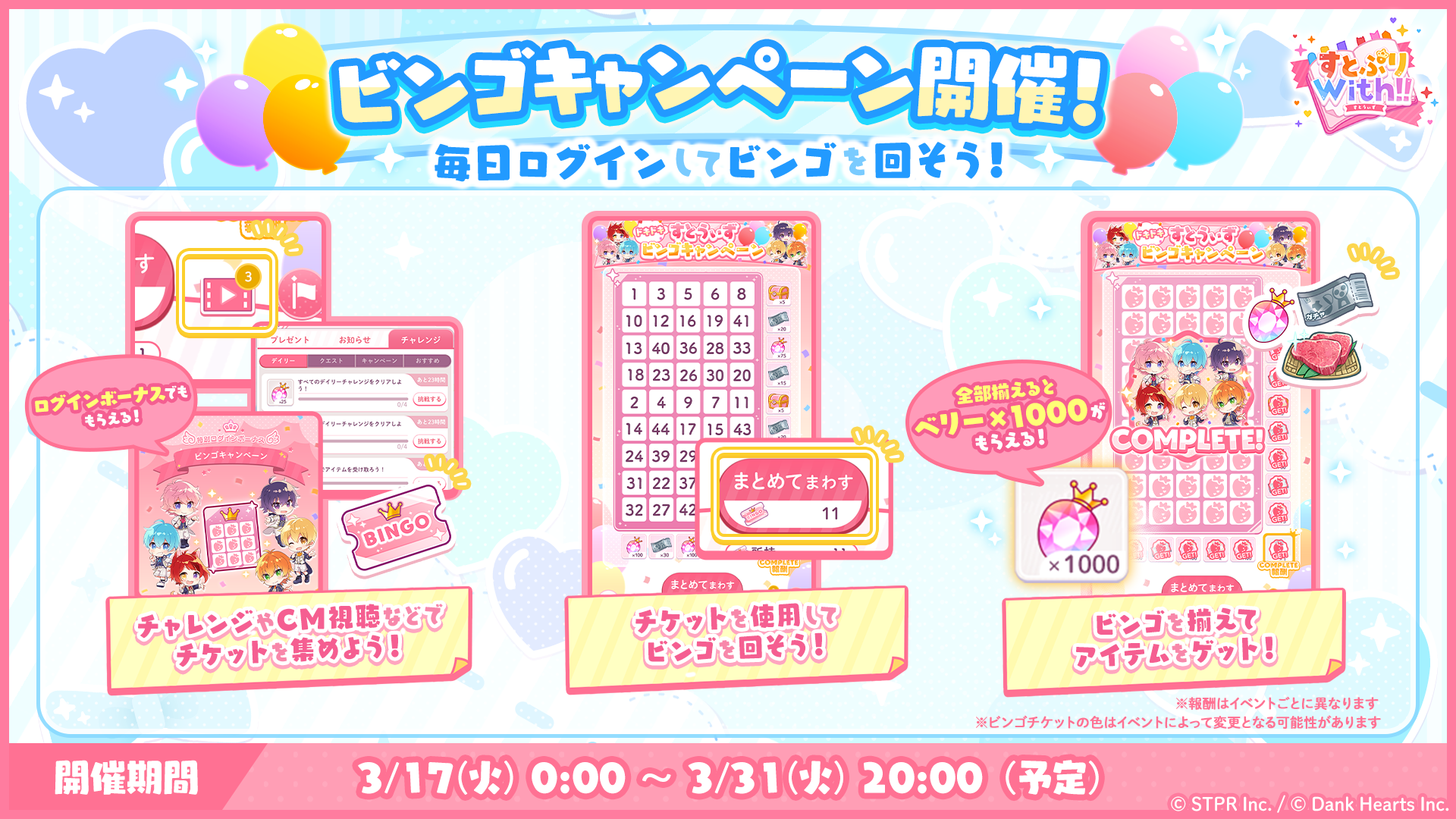 3月17日(火)より、「ドキドキすとうぃずビンゴキャンペーン」が開催します!