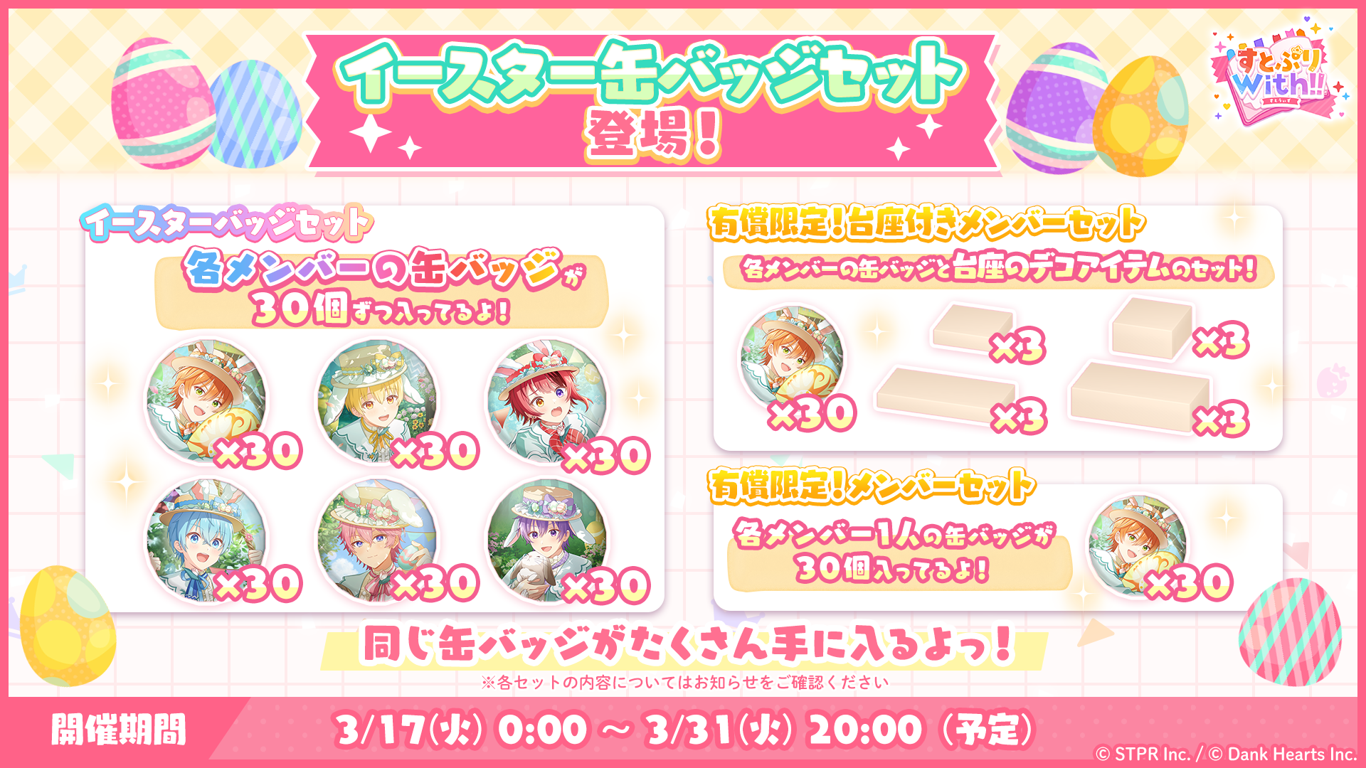 3月17日(火)より、「イースター缶バッジセット交換所」が登場します。