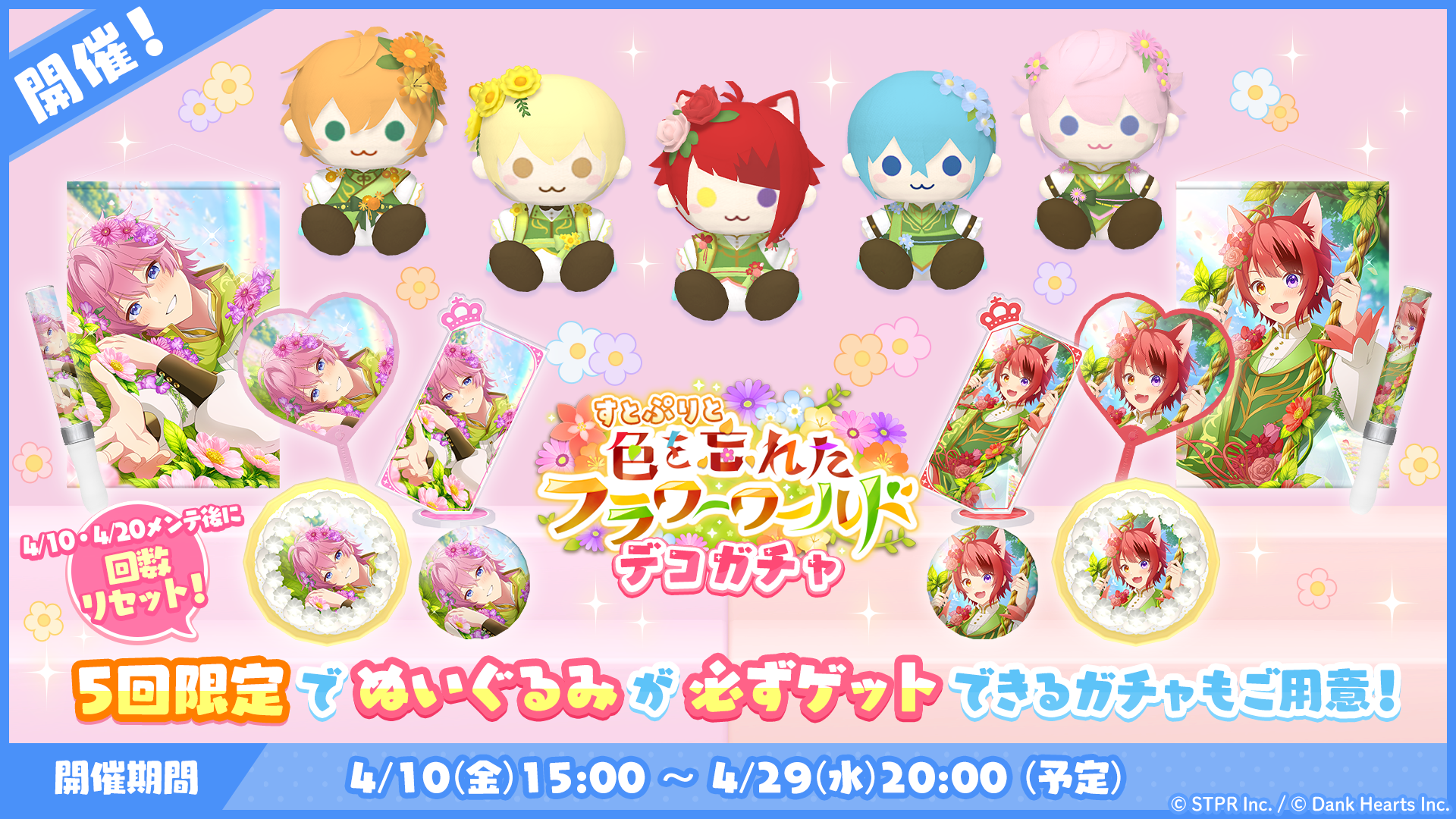 本日より、新たなデコアイテムがピックアップ登場する「すとぷりと色を忘れたフラワーワールド 第2弾 デコガチャ」が開催中です。