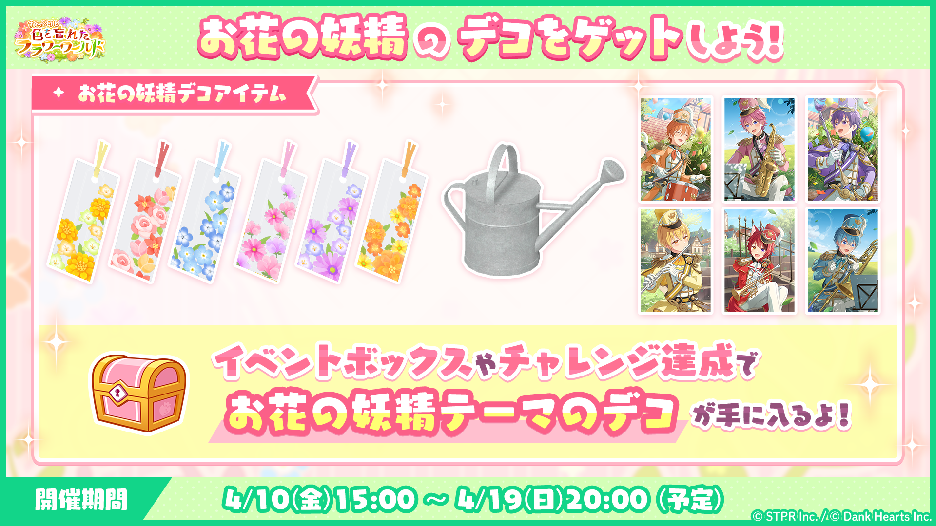 さらに今回のイベントではイベントボックスやキャンペーンチャレンジからお花の妖精をテーマにした特別なデコアイテムを入手できます。