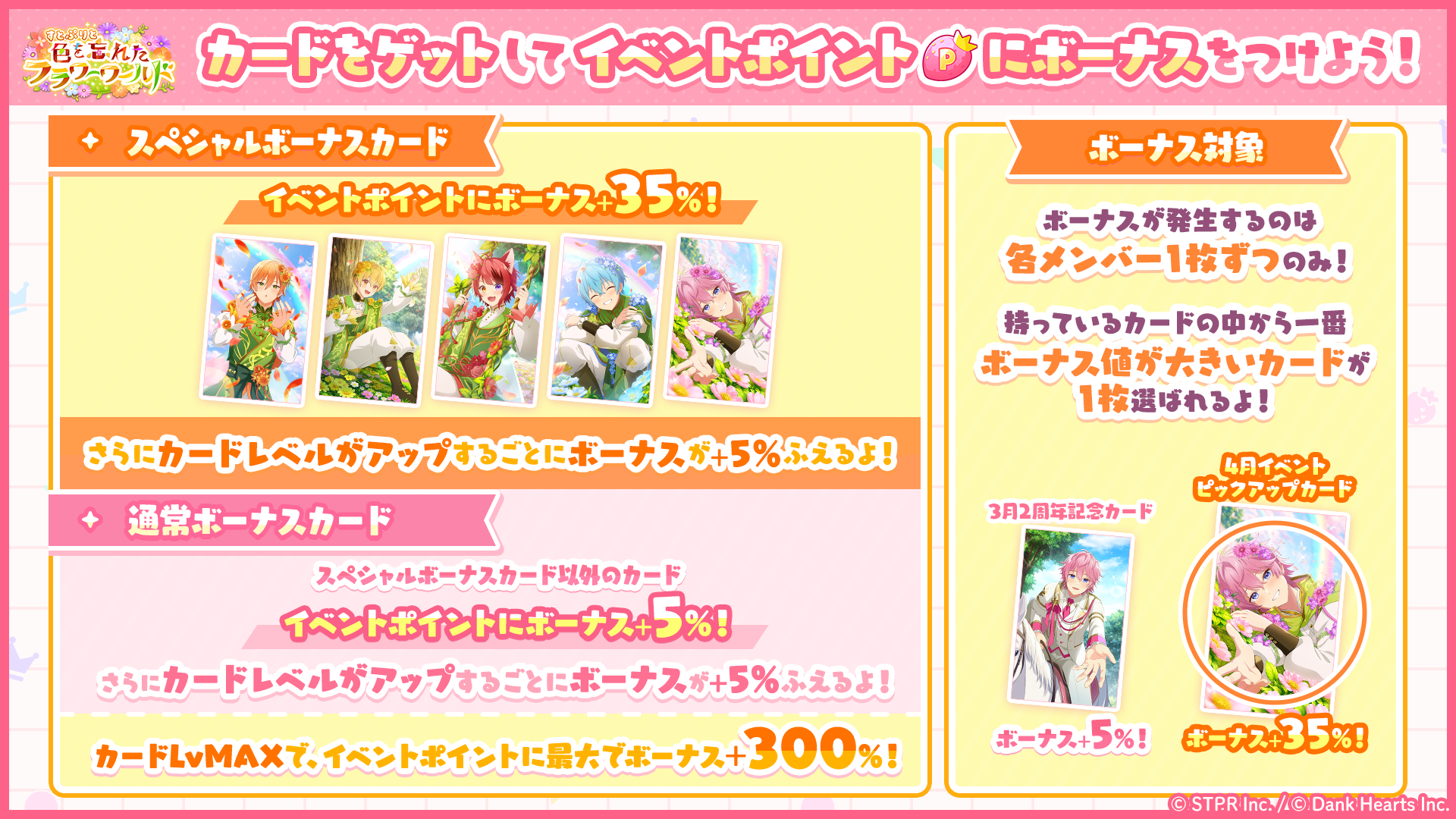 開催月に応じて「通常ボーナスカード」よりもボーナスが高い「スペシャルボーナスカード」が登場します。