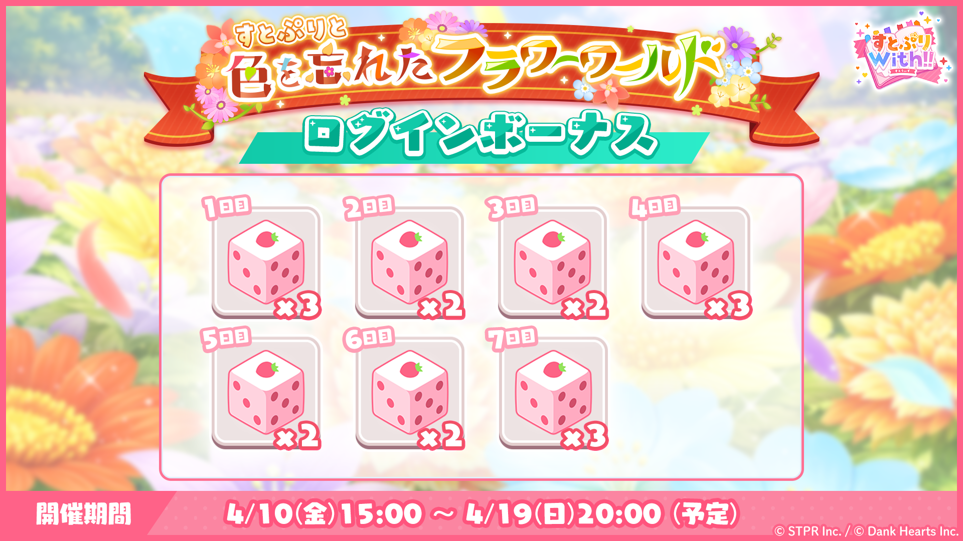 本日より、「すとぷりと色を忘れたフラワーワールド すごろくイベント ログインボーナス」を実施中です。